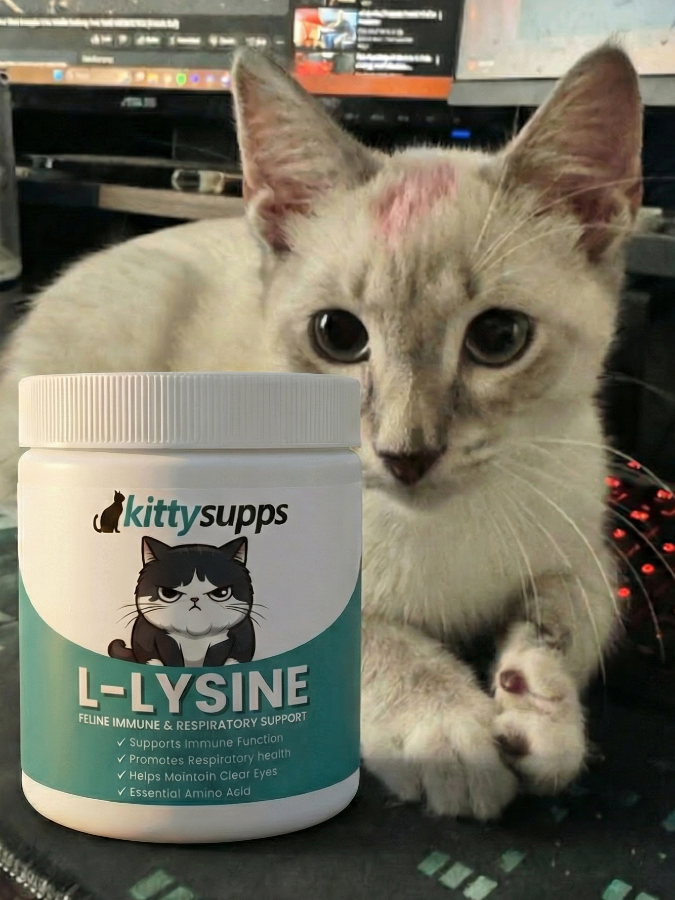 Just one scoop of KittySupps L-Lysine mixed into your cat's food provides essential immune support their body needs daily. Perfect for cats prone to stress, respiratory flare-ups, or those with a history of eye and nasal irritation.