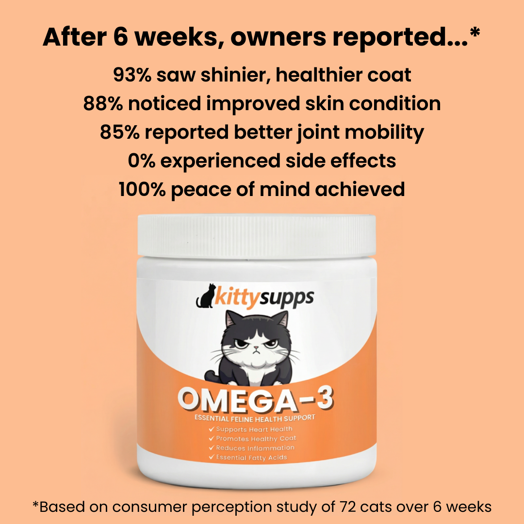 Within 2-4 weeks of daily supplementation, most cat owners report visibly shinier coats, reduced shedding, and healthier-looking skin. By 6-8 weeks, improvements in mobility and energy levels become apparent. This isn't just a supplement—it's filling a critical nutritional gap that's been missing from your cat's diet.